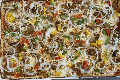 Sahnesauce, Hähnchen-Dönerfleisch, Gorgonzola Käse, frische Champignons,